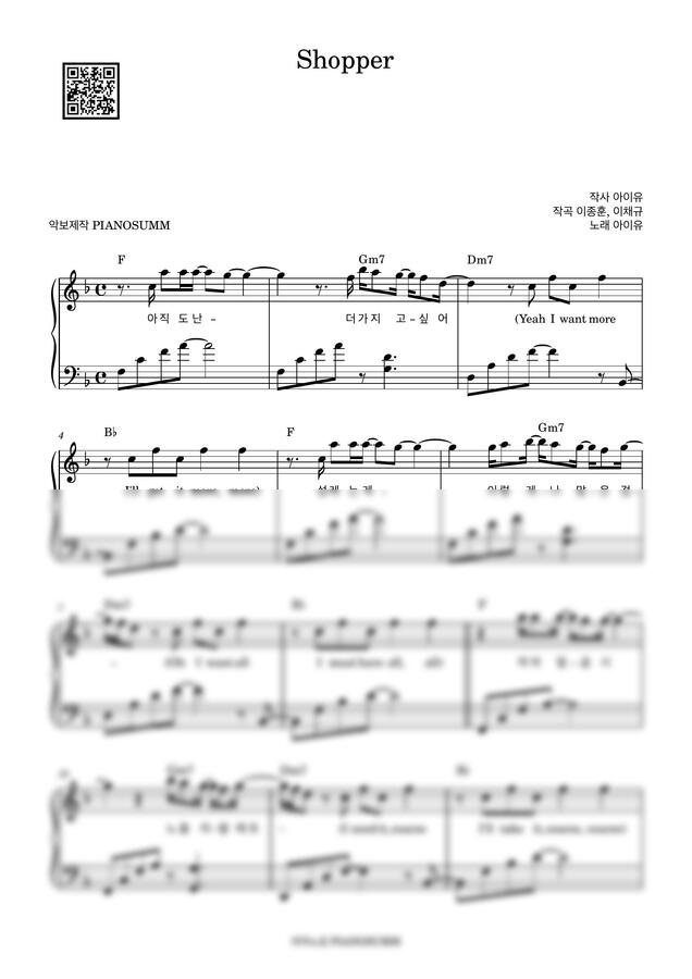 아이유의 Shopper 피아노 악보입니다
