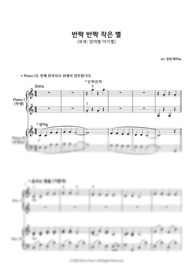 반짝반짝 작은 별 (Twinkle Twinkle Little Star) - 4-Hands (학생과 선생님)