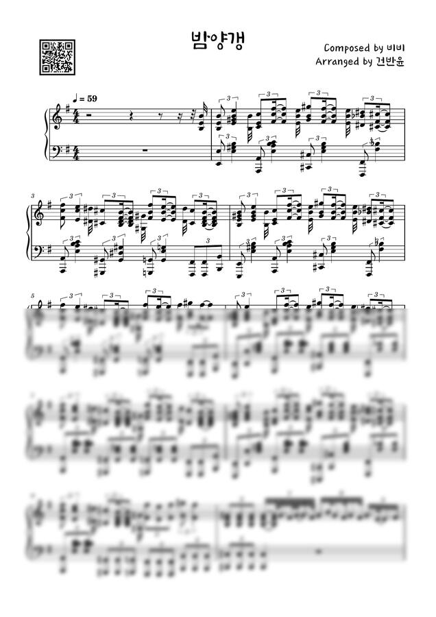 비비 - 밤양갱 피아노 커버 악보입니다.
