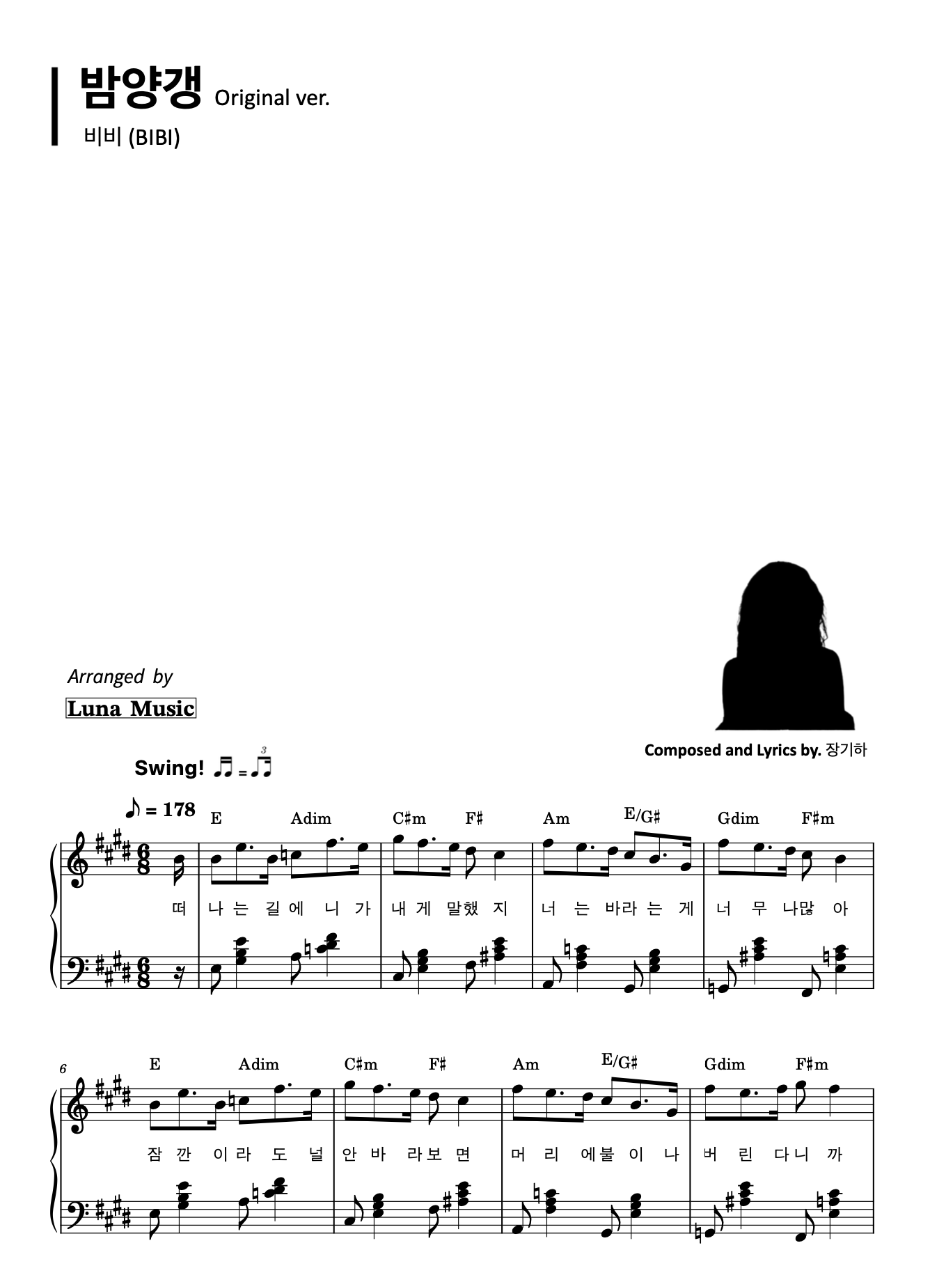 비비 (BIBI) - 밤양갱 🌰 [원곡 악보] by 루나뮤직1