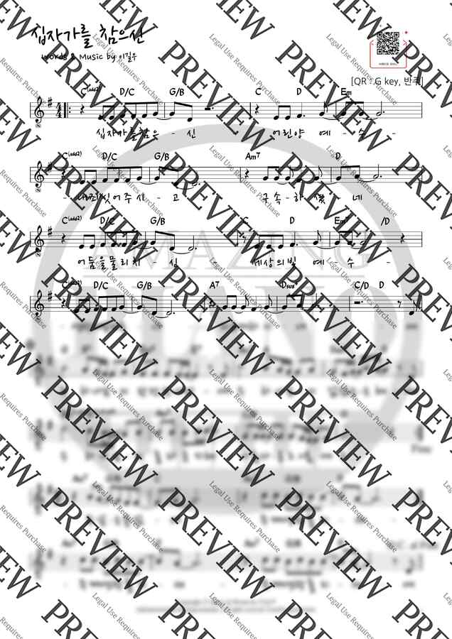 형 태 : 1단악보, 멜로디 코드 악보