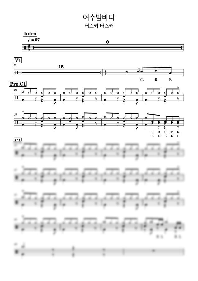 버스커버스커 - 여수밤바다 드럼악보입니다.