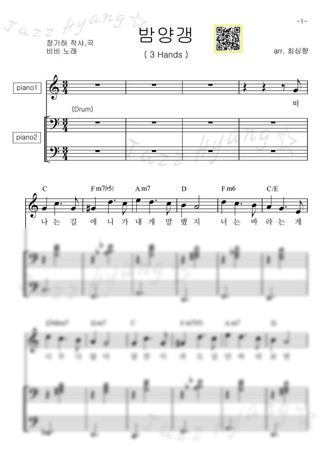 비비(BIBI) - 밤양갱 (E키, 4 hands, 쉬운, MR 포함) https://www.mapianist.com/sheet/111026