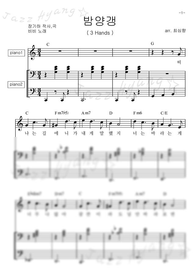 비비(BIBI) - 밤양갱 (C키, 3 hands, 쉬운, 악보만) https://www.mapianist.com/sheet/109526