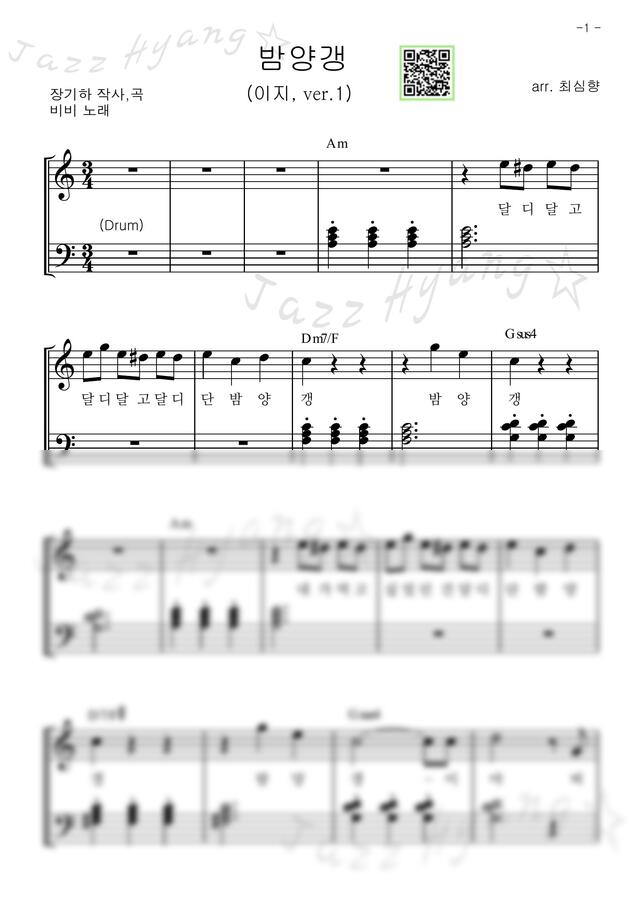 비비(BIBI) - 밤양갱 (E키, 2단, 이지 ver.3, 보기 쉬운 악보, 악보만) https://www.mapianist.com/sheet/111166