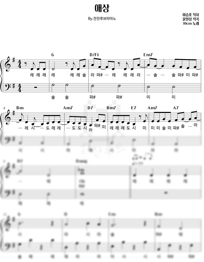 10cm - 애상_Gkey[1절] (계이름,가사,코드) by 잔잔루브