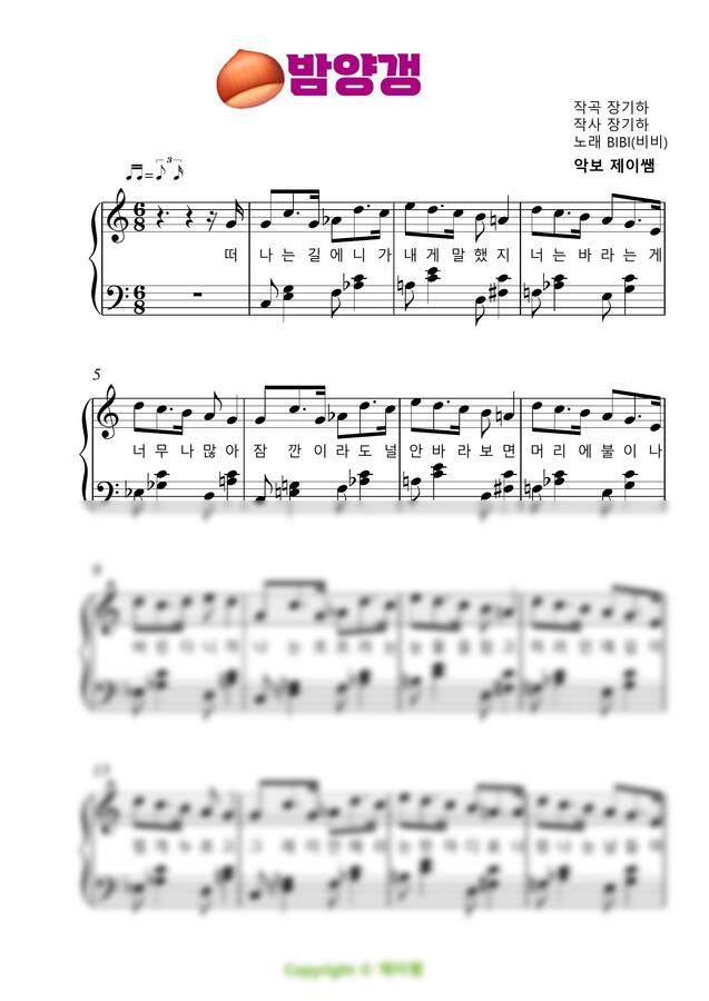 →악보 > 밤양갱 (비비/BIBI) 초급이지만 멋지게연주 ★ - 원곡같은 풀버젼! (다장조 / 가사포함) by 제이쌤 (mapianist.com)