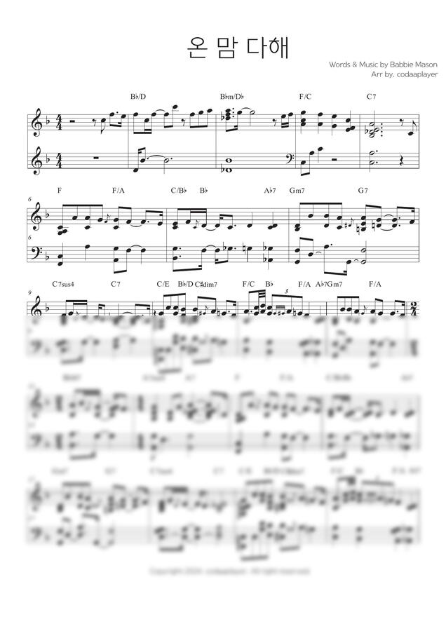Babbie Mason - 온 맘 다해 (재즈피아노 버전) by 코다플레이어
