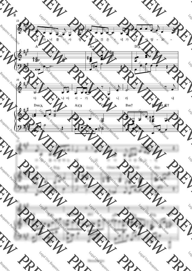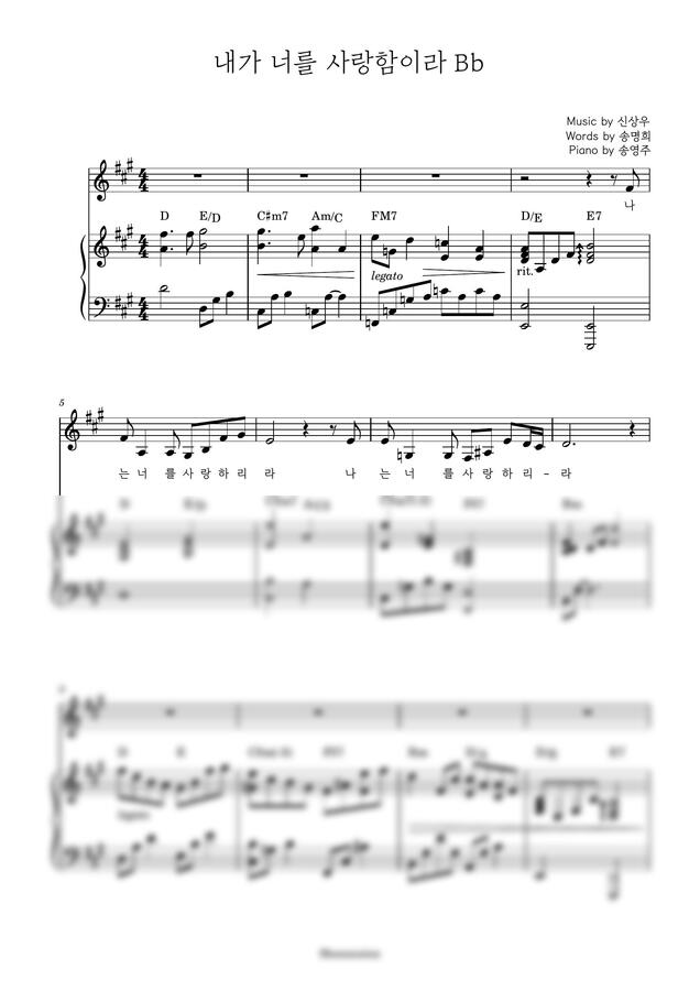 버전의 너를 사랑함이라 악보입니다.