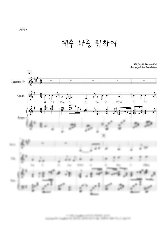 W.H.Doane - 예수 나를 위하여 (Pf,Cl,Vn) by ToneWith 톤위드