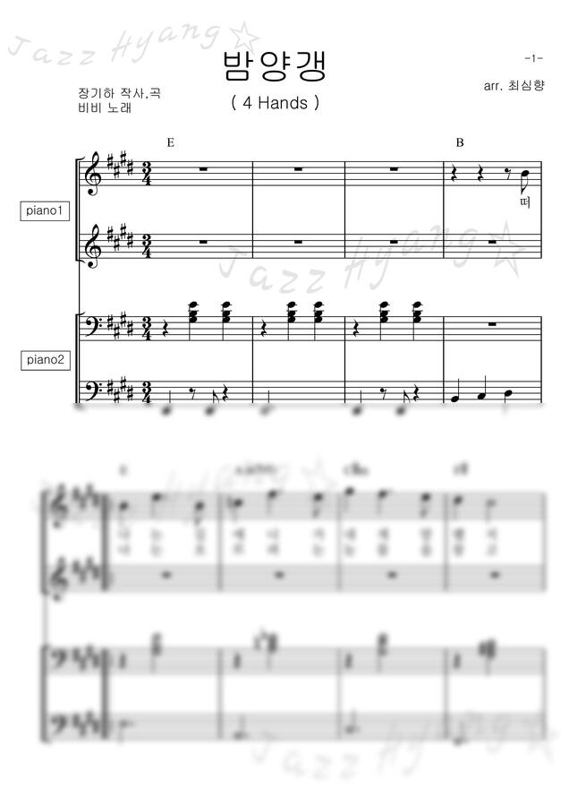 💜 밤양갱 (E키, 4 hands, 악보만)