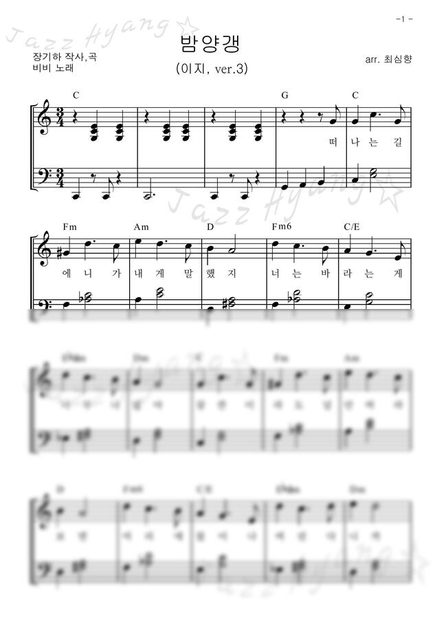 💜 밤양갱 (C키, 2단, 이지 ver.3, 악보만)