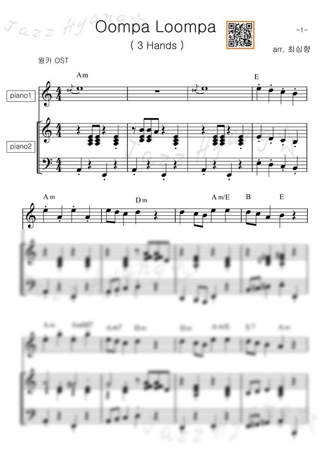 웡카 OST - 움파룸파 (3 hands, 악보만) https://www.mapianist.com/sheet/111331