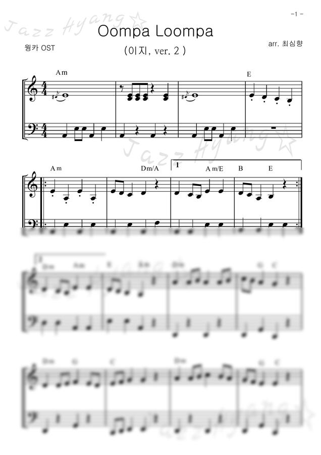 🕺 웡카 OST - 움파룸파 (2단, 이지 ver.2, 악보만)