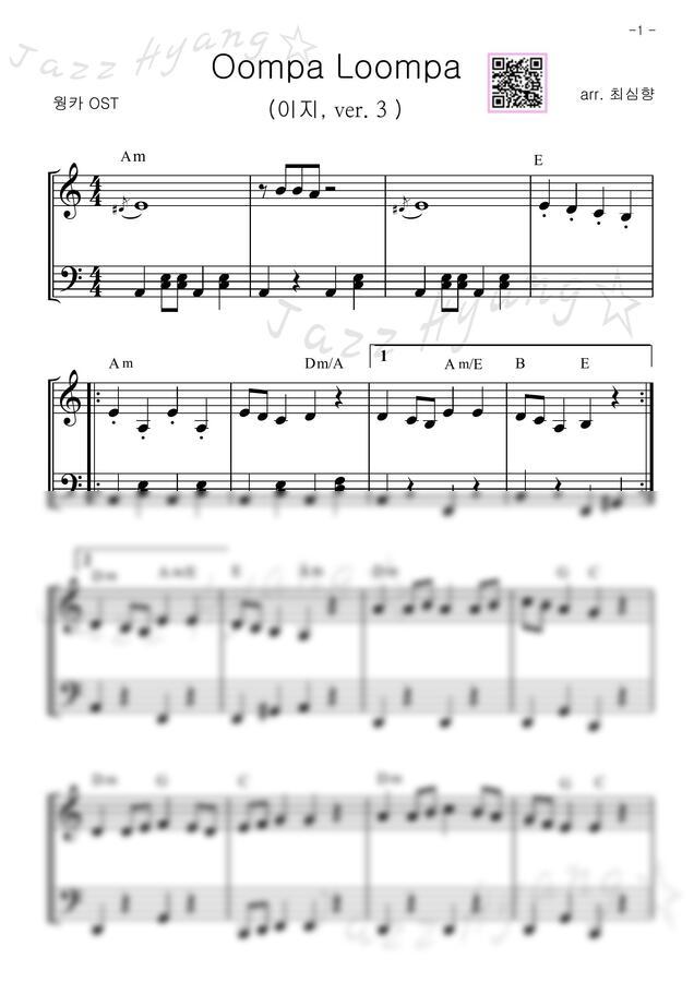 웡카 OST - 움파룸파 (4 hands, 이지, 악보만) https://www.mapianist.com/sheet/111206