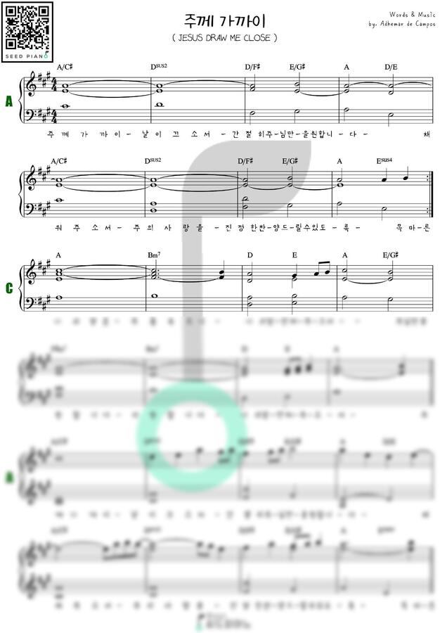 Adhemar de Campos - 주께 가까이 (AKey |세컨악보) by 씨드피아노