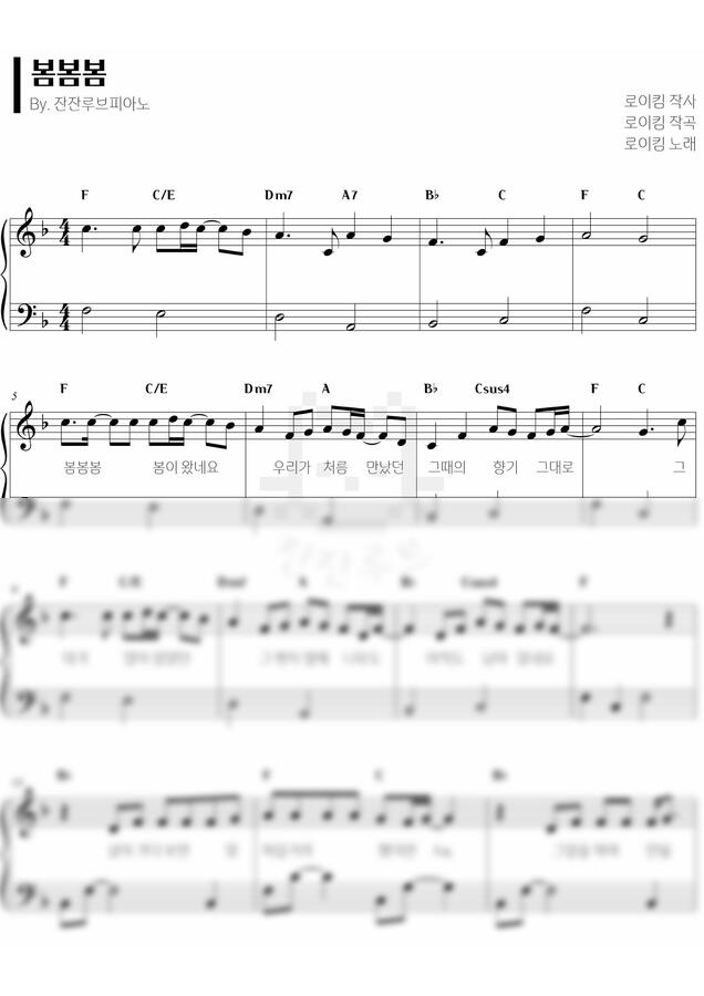 로이킴(RoyKim) - 봄봄봄_Fkey[full score] (계이름,코드,가사) by 잔잔루브