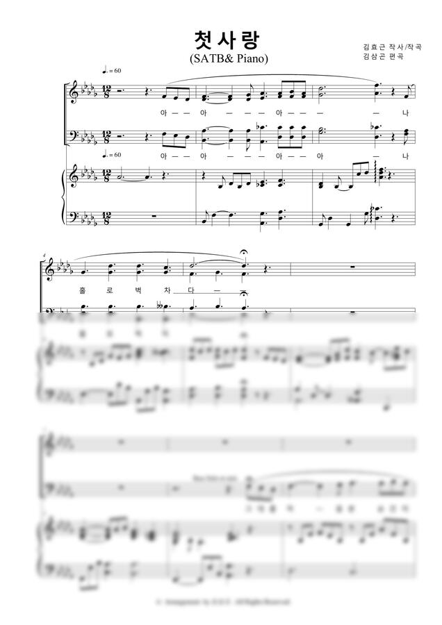 #김효근 #첫사랑 #혼성4부합창 #합창악보 #클래식 #감성 #음악 #아름다운선율 #감동 #추억