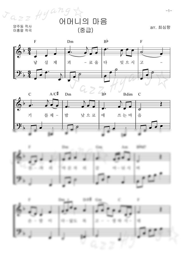 어머니의 마음 (F키, 중급, MR포함) https://www.mapianist.com/sheet/71802