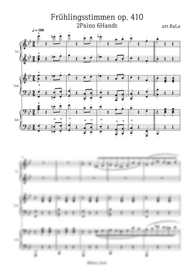 J. Strauss II - Frühlingsstimmen op.410 2Piano 6Hands 악보입니다.