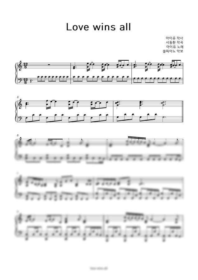 아이유 'Love wins all' 피아노 연주악보입니다.