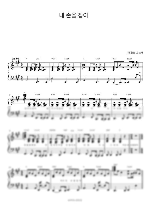 아이유(IU) - 내 손을 잡아 (최고의 사랑 OST) (반주악보) by 피아노정류장
