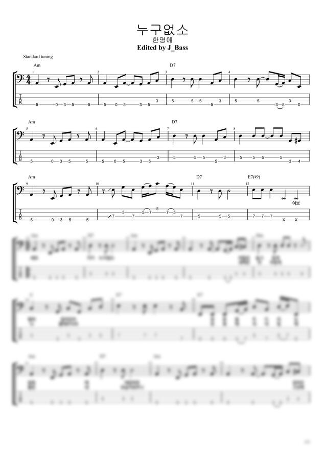 한영애의 “누구없소“ 베이스기타 악보입니다.