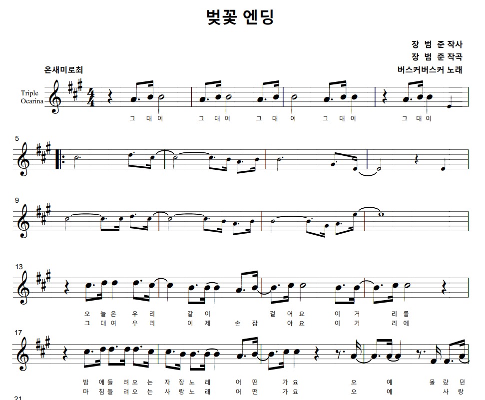 장범준 - 벚꽃엔딩 (트리플오카리나) by 온새미로최