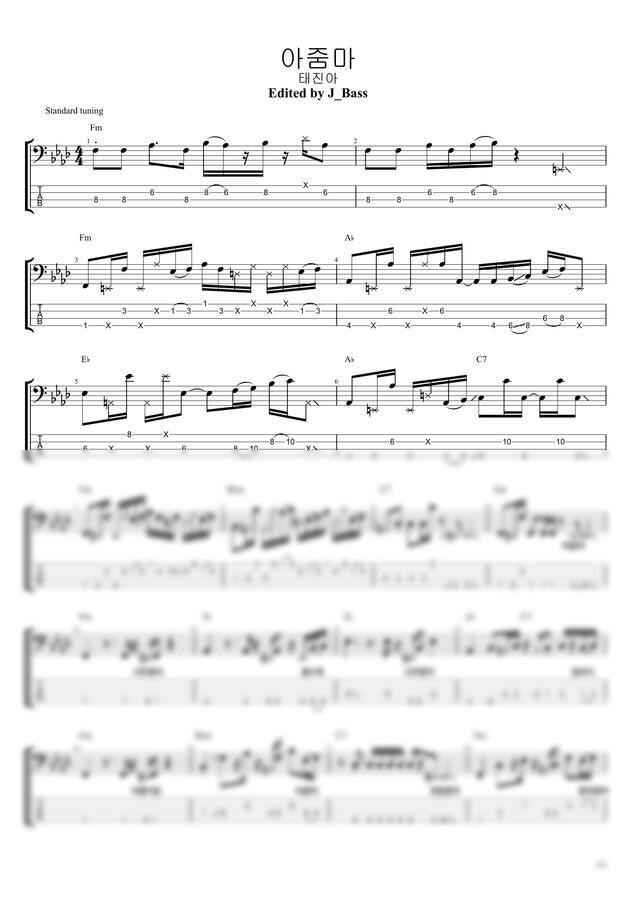 태진아의 “아줌마“ 베이스기타 악보입니다.