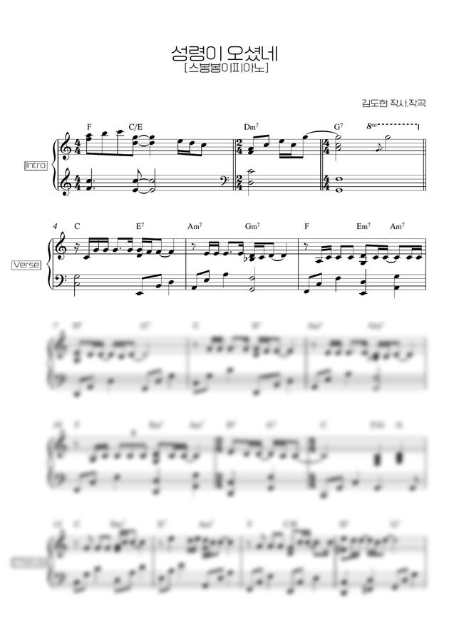 김도현 - 성령이 오셨네 [아이들도 가능한 반주악보] by 스봉봉이피아노
