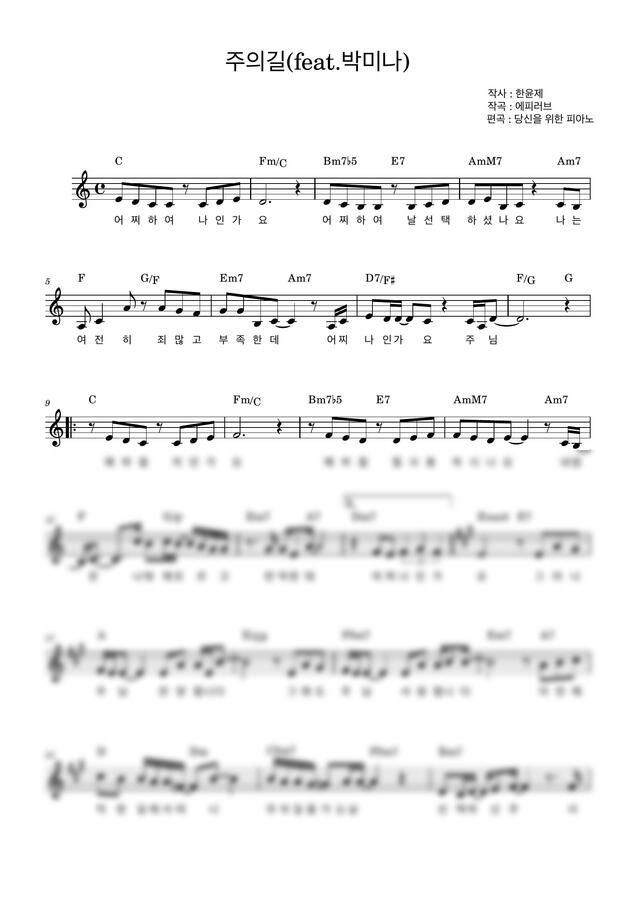 멜로디 + 가사 + 코드 악보입니다 😊