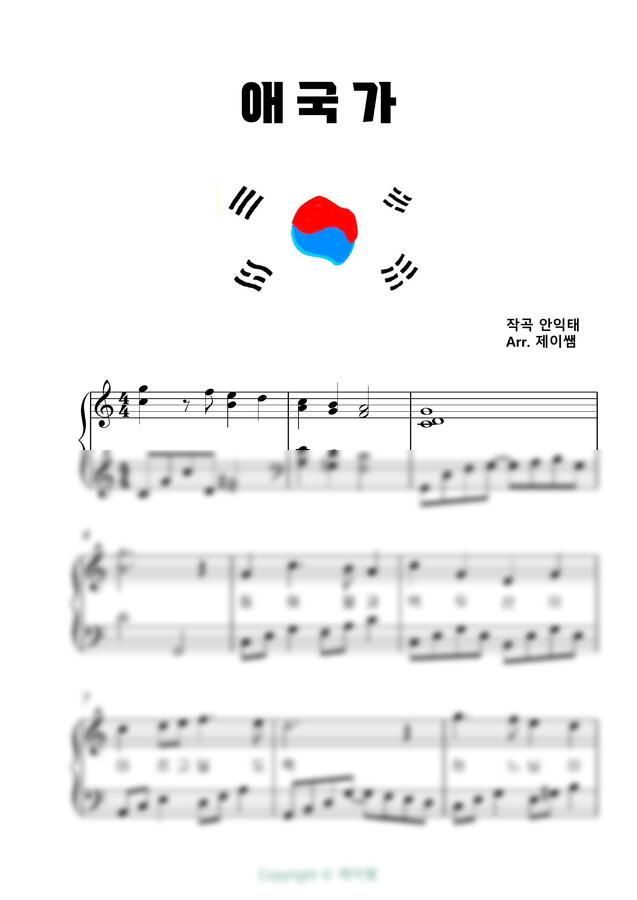 (예쁜) 애국가 -안익태 (예쁜 편곡악보 / 애국가로 힐링해요) - 1절가사 포함/다장조 (초중급) by 제이쌤