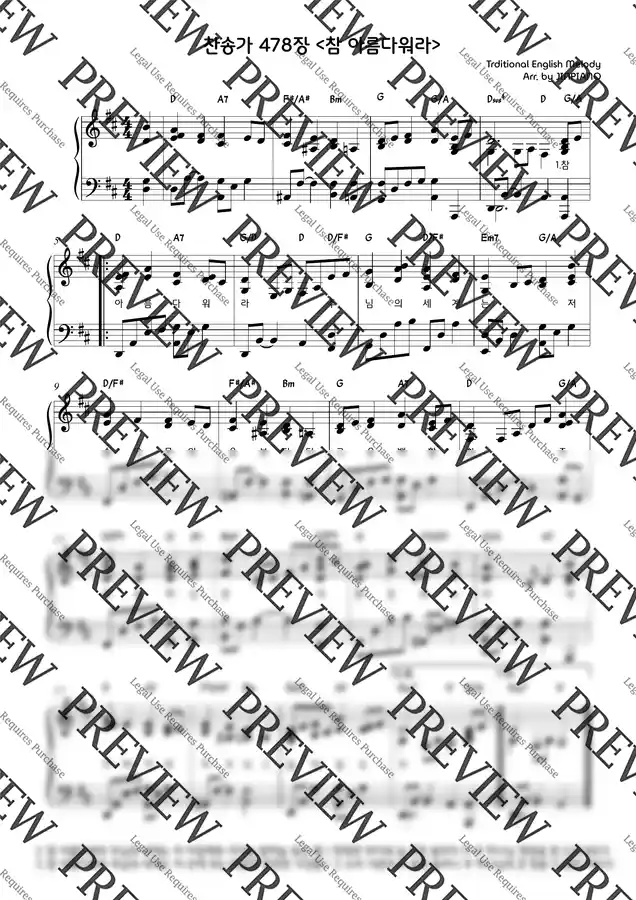 찬송가 478장 - 참 아름다워라(D key) (예배찬송가피아노반주) by JINPIANO 1p 미리보기