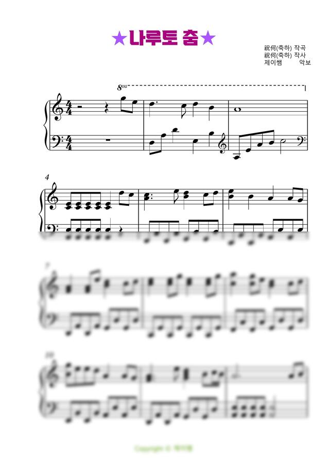 초보자들도 연주가능한 짧고 쉬운 악보입니다.