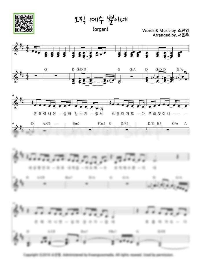 소진영 - 오직 예수 뿐이네(세컨건반 organ) (D key) by 서은주