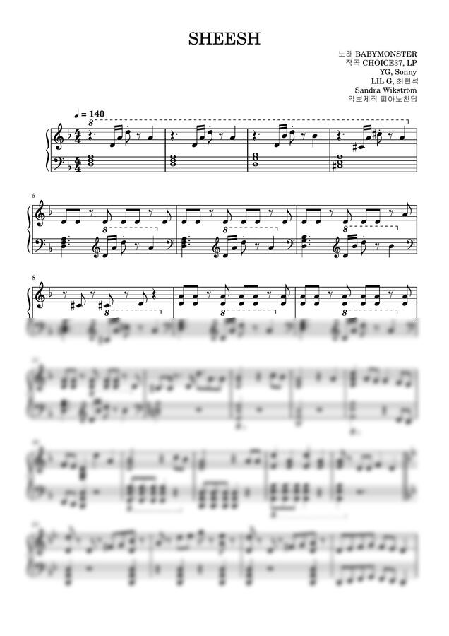 2024년 4월 1일 발표된 베이비 몬스터의 SHEESH (풀버전) 를 피아노 악보로 제작했습니다.