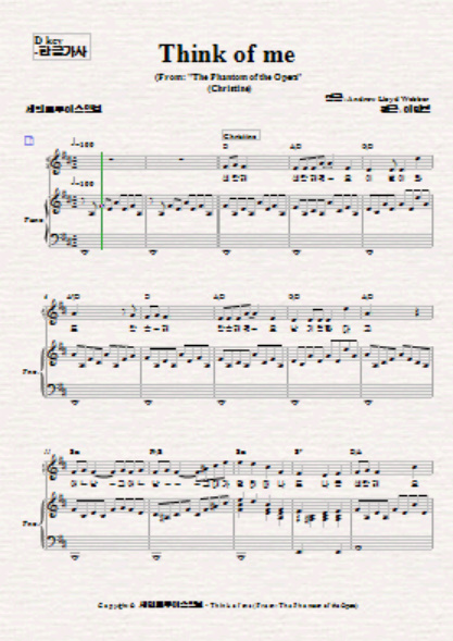 "Think of me"를 영어가사악보,한글가사 악보 두 버젼 악보 중 한글가사악보 입니다
