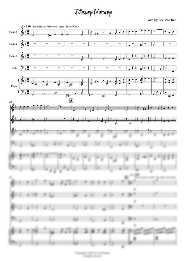 디즈니OST - Disney Medley short ver.(백설공주, 인어공주, 미녀와 야수, 알라딘, 겨울왕국) (3vn,vc,pf) by 밤등불0