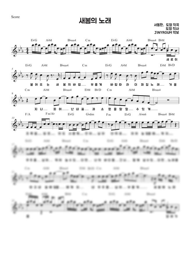 도영(DOYOUNG) - 새봄의 노래(Beginning) (멜로디악보) by JINYROUM