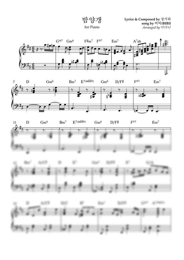 이번에 비비의 밤양갱을 편곡해서 피아노 반주 악보로 만들어보았습니다.