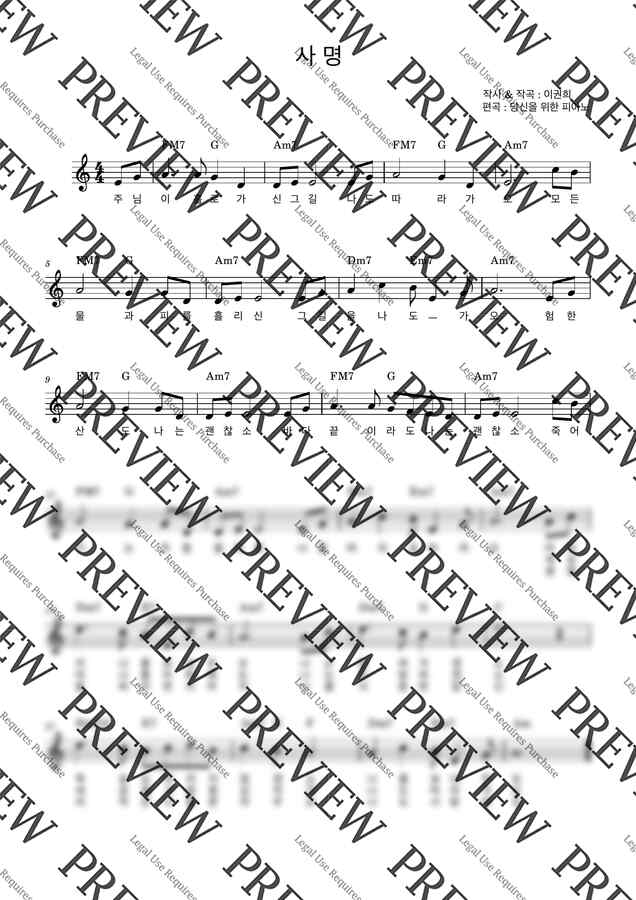 이권희 - 사명 (C키,가사,코드) by 당신을위한피아노
