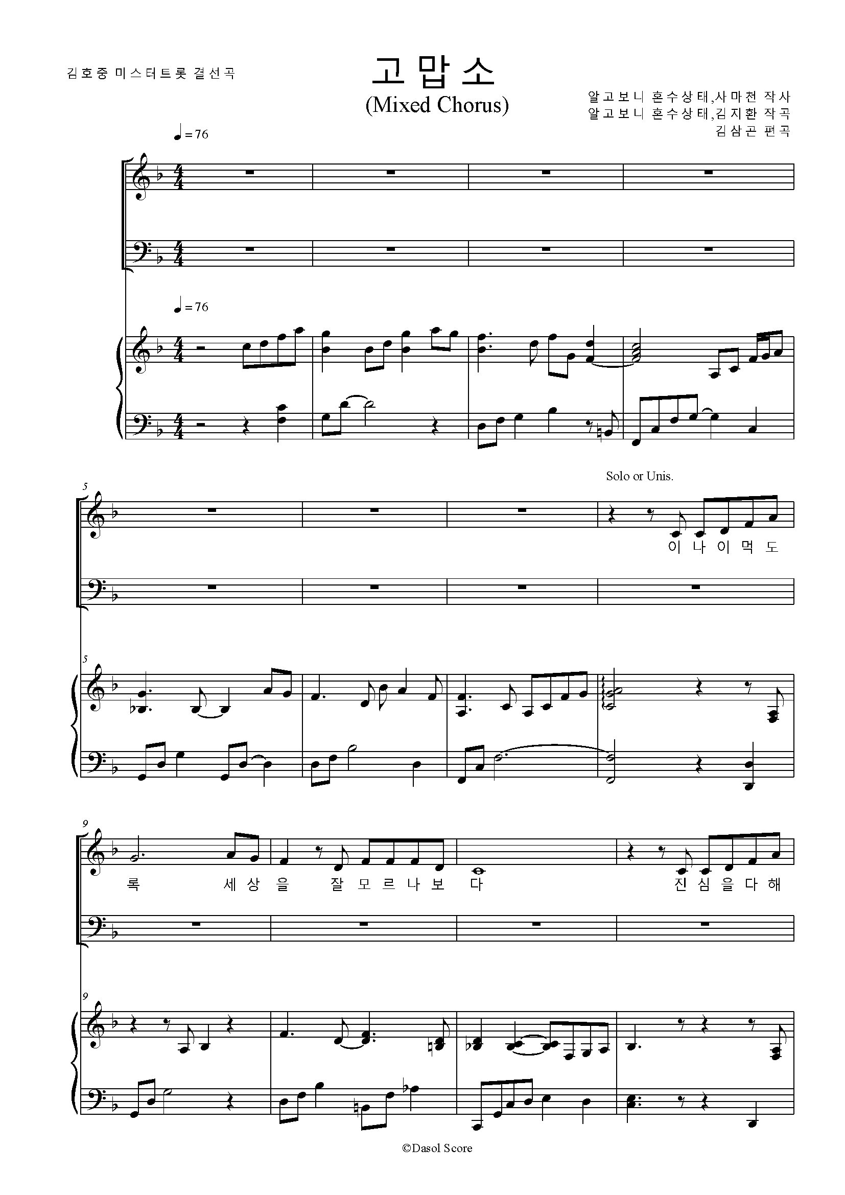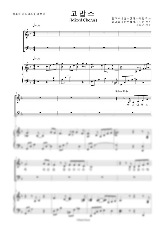 - #고맙소 #조항조 #합창 #합창편곡 #악보 #마피아 #트로트 #발라드 #감동