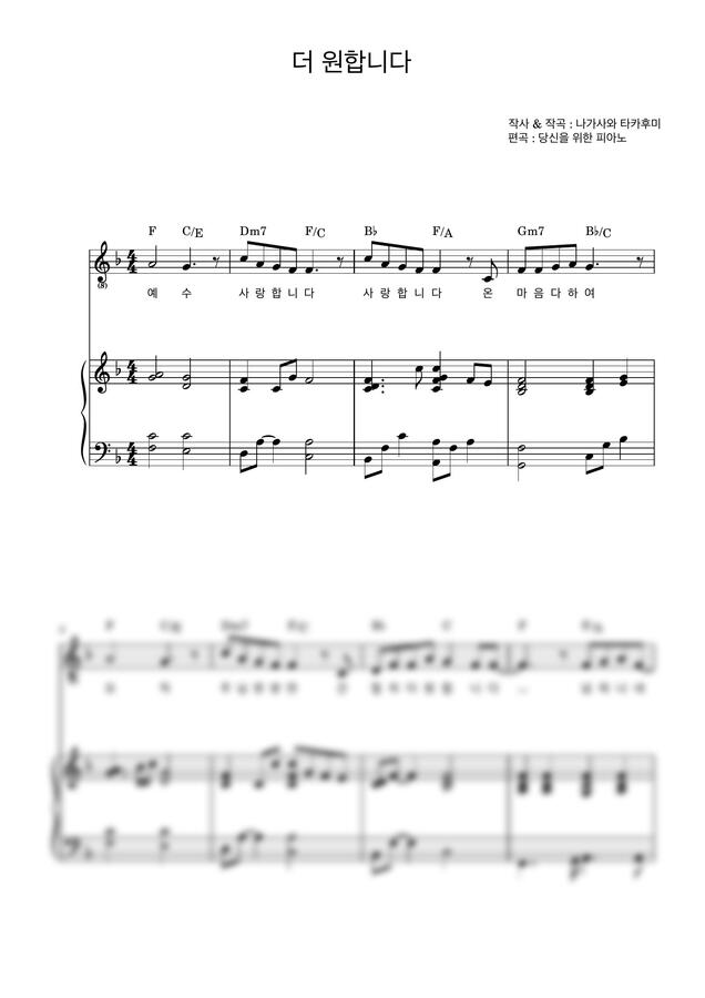F키 멜로디 + 가사 + 코드 + 피아노 반주 ( 3단 악보입니다 )