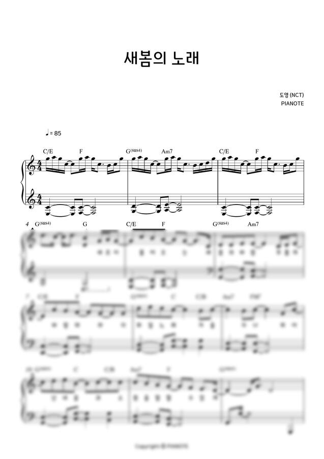 이번 음악은 도영(DoYoung) - 새봄의 노래 피아노 커버입니다.