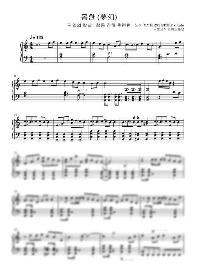 [귀멸의 칼날: 합동 강화 훈련편] 오프닝 곡 몽환(夢幻) 풀버전을 피아노악보로 제작했습니다.