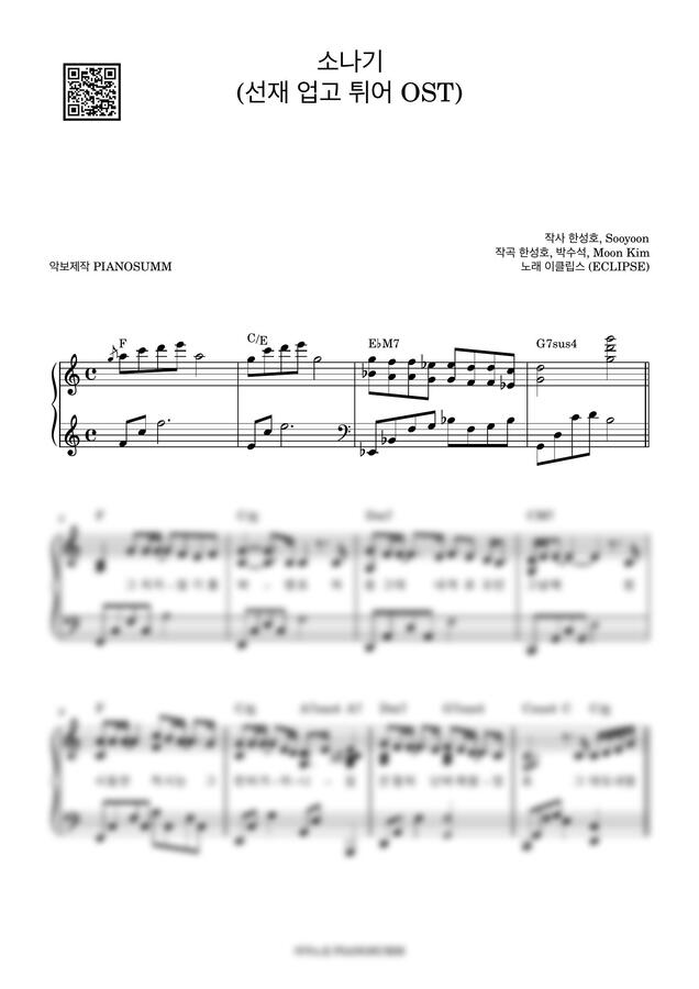 이클립스의 소나기 피아노 악보입니다