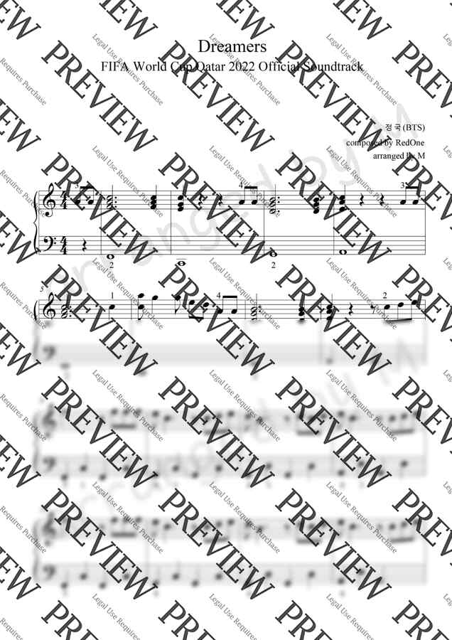 정국(방탄소년단BTS) - Dreamers 원곡 ver. 어려운 난이도 피아노 악보 보러 가기