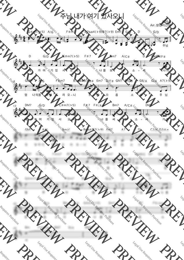 최덕신 - 주님 내가 여기 있사오니 (D key멜로디악보) by 생명의건반