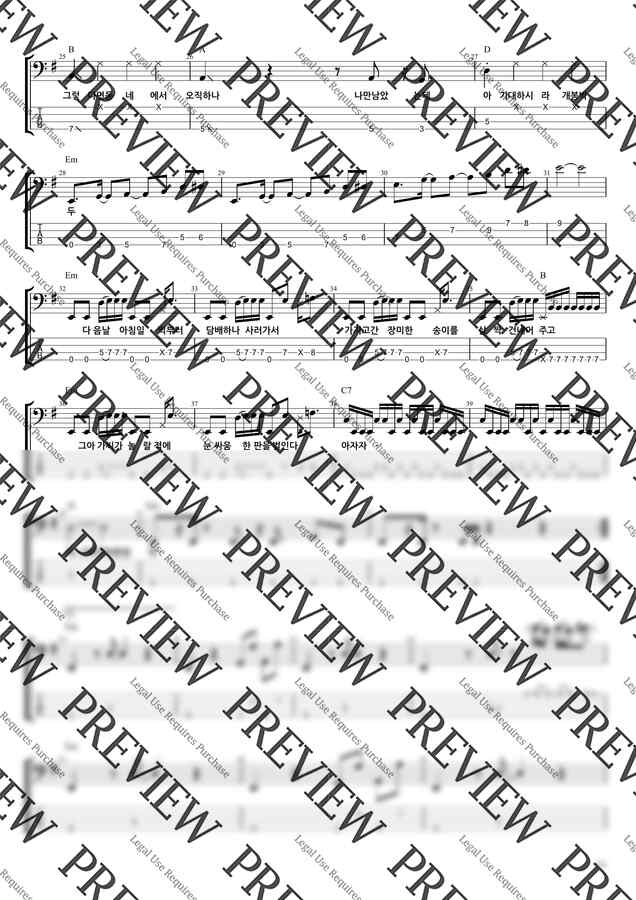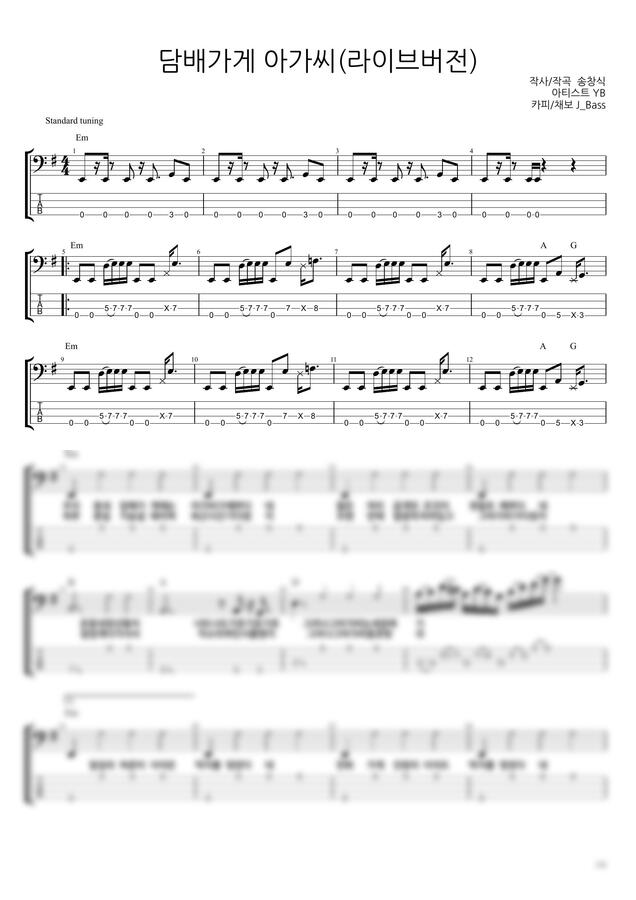 YB의 “담배가게 아가씨“ 베이스기타 악보입니다.