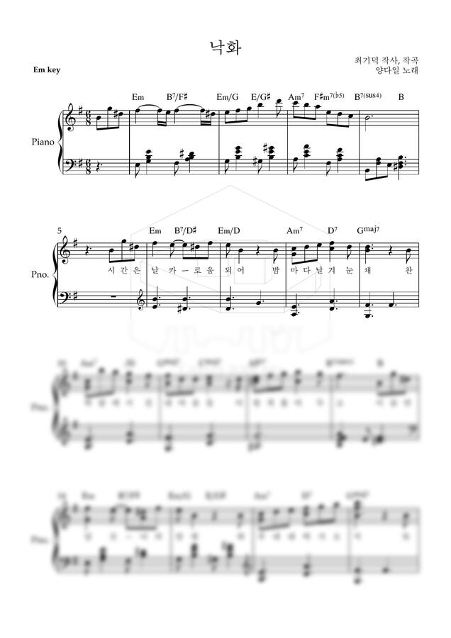 오늘은 양다일님의 '낙화' 피아노 악보를 가져왔어요~